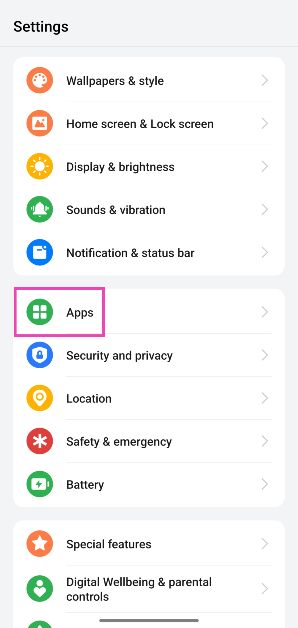 ステップ1:行きます設定選択しますアプリ。