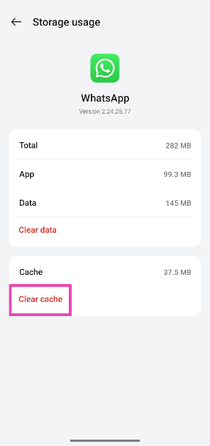 WhatsAppのキャッシュをクリアします