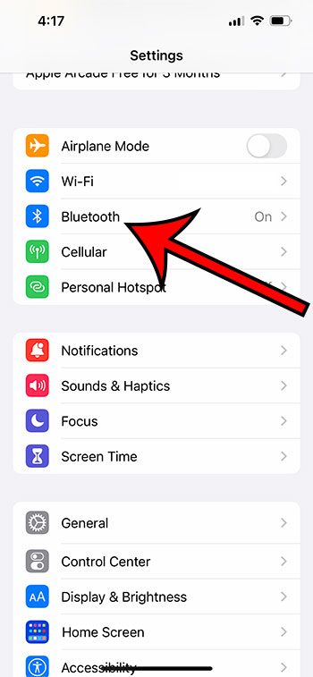 ステップ2:選択しますブルートゥースメニューのオプション。