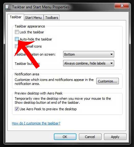 しかし、タスクバーは隠すことができます。これは、Windows 7ナビゲーションの多くに頼ると混乱する可能性があります。
