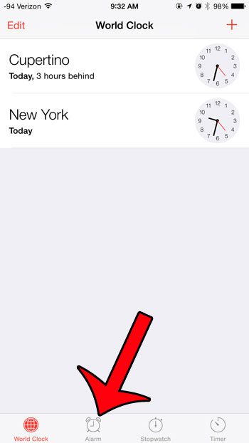 ステップ2:タップしますアラーム画面の下部にあるオプション。