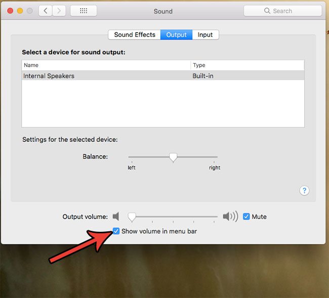 ステップ3:左側のボックスをクリックしますメニューバーにボリュームを表示しますメニューの下部に。