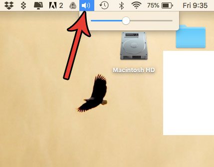 これで、画面の上部にあるステータスバーにスピーカーアイコンが表示されます。これをクリックして、ボリュームレベルの変更をクリックしたり、MacBookのサウンドをミュートしたりできます。