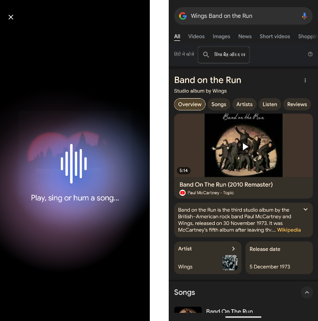 ステップ4:お使いの携帯電話は数秒間曲を聴いてから開きますGoogle検索結果曲のタイトルのために。