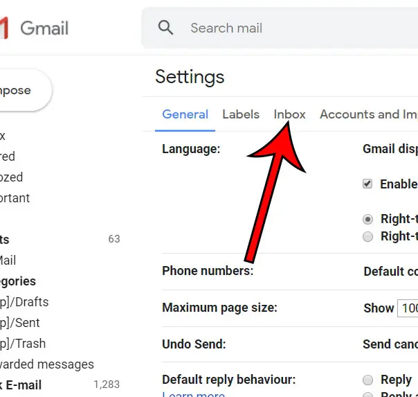 ステップ3:を選択します受信トレイメニューの上部にあるタブ。