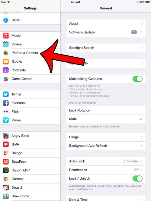 ステップ2:画面の左側の列を下にスクロールしてから、写真とカメラオプション。
