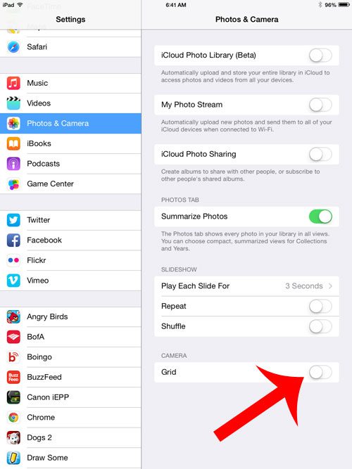 ただし、このオプションは自由にオンまたはオフにすることができますので、以下を読み続けて、iPadのカメラグリッドをオフにする方法を見つけてください。