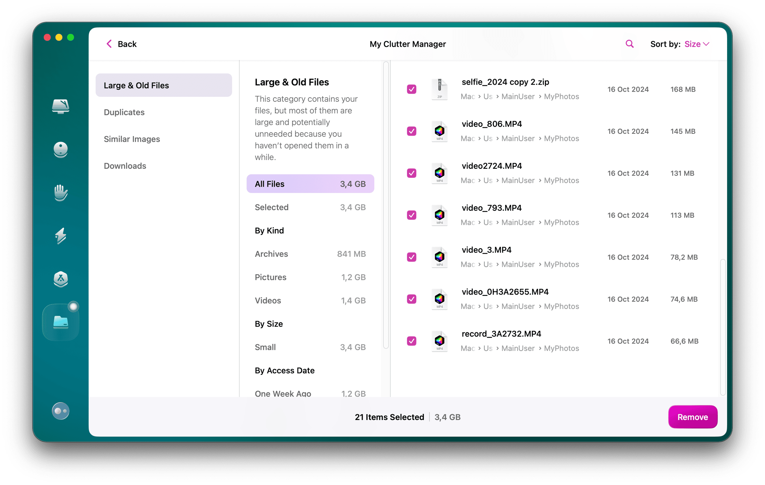 - アプリケーションを開き、サイドバーから、大型および古いファイルを選択します。