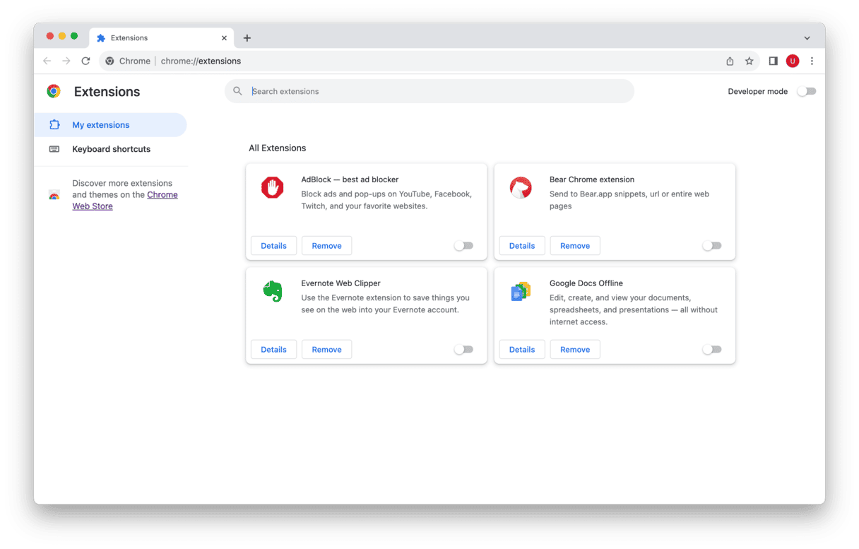 ブラウザタブに加えて、拡張機能はバックグラウンドで実行されているため、多くのCPUも消費します。したがって、それらをチェックして、Macの過熱を避ける必要がないものを無効にすることをお勧めします。さまざまなブラウザのためにそれを行う方法は次のとおりです。
