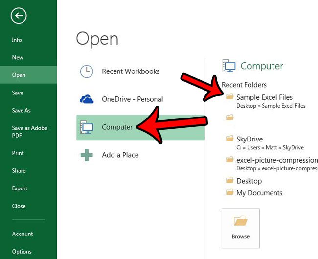 ステップ4:クリックしますコンピューター中央列で(または、フォルダーが別の場所にある場合は、他のオプションのいずれかをクリックします)、右の列のオプションから目的のフォルダーを参照します。