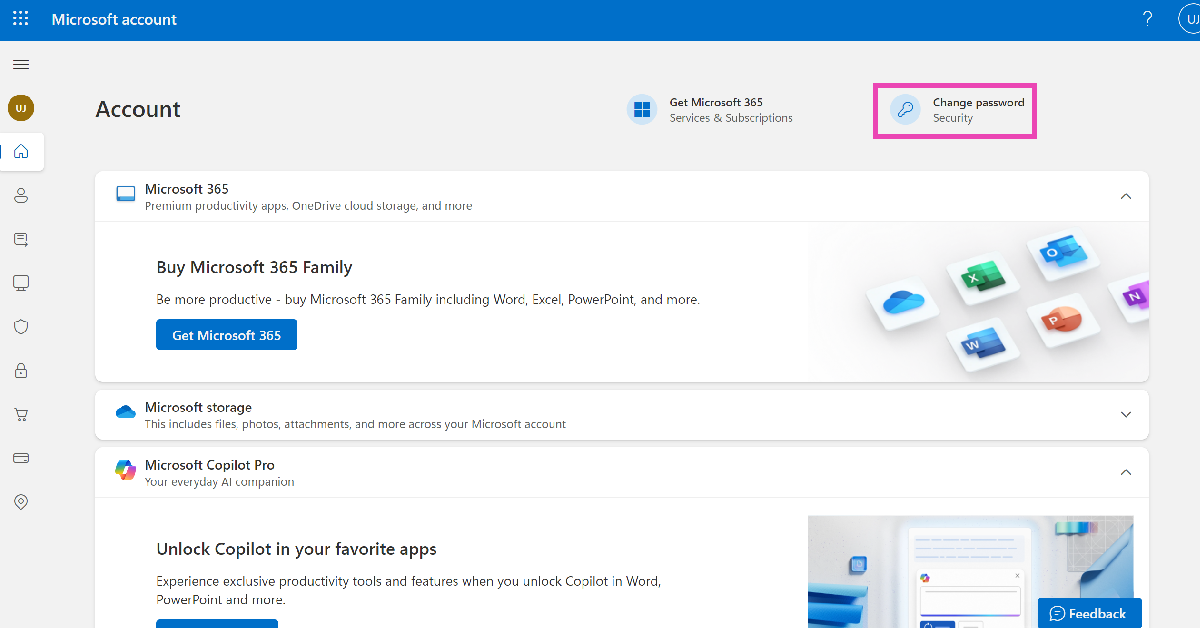 ステップ2:クリックしてくださいパスワードを変更する画面の右上隅に。