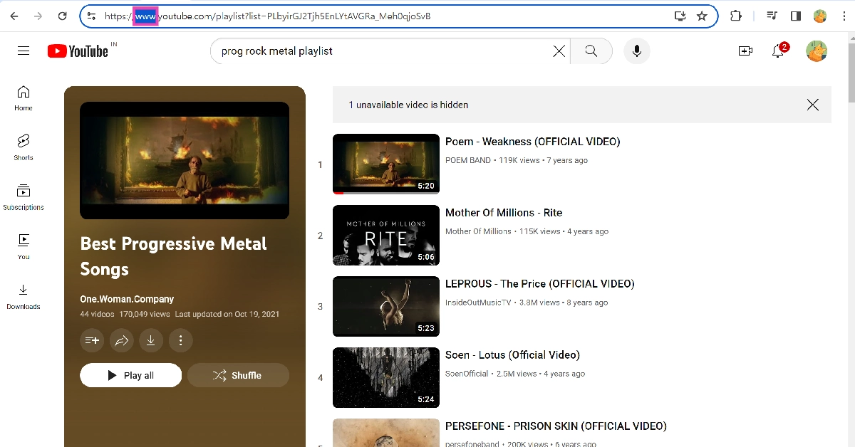 ステップ2:クリックしますアドレスバーそして交換 'www' のために '音楽'。たとえば、プレイリストのURLがある場合www.youtube.com/abc、Music.youtube.com/abcに変更します。