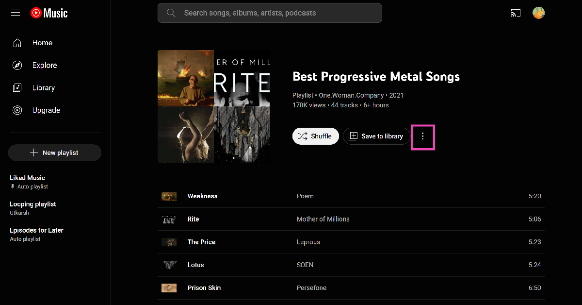 ステップ3:プレイリストが開きますYouTube音楽。