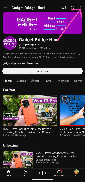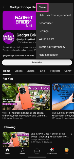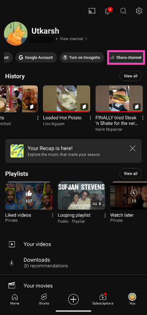 ステップ1: 打ち上げYouTubeアプリと共有したいチャンネルに移動します。