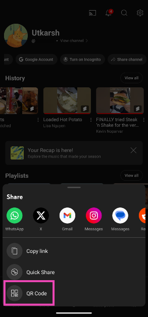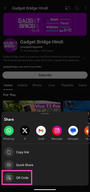 YouTubeに移動して、選択してください>共有チャネル> QRコード、およびコードを携帯電話に保存します。