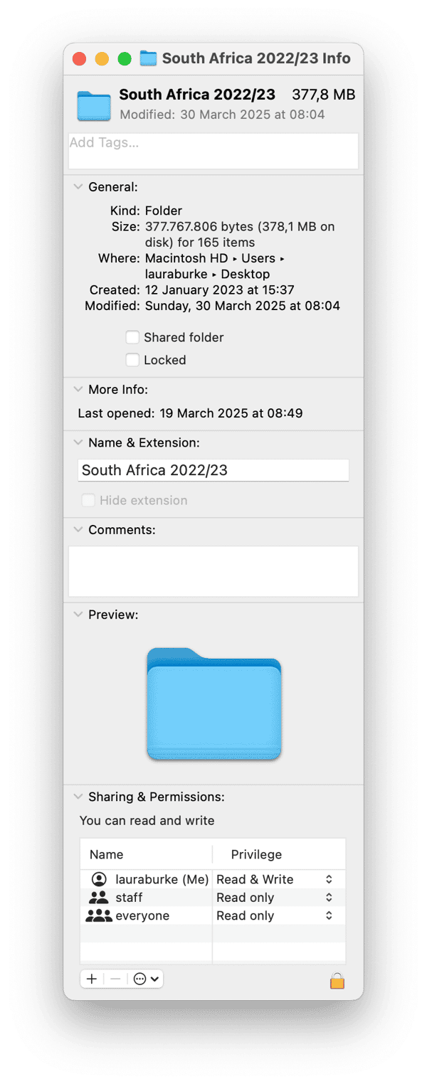- ターゲットフォルダーを右クリックして、[情報の取得]を選択します。